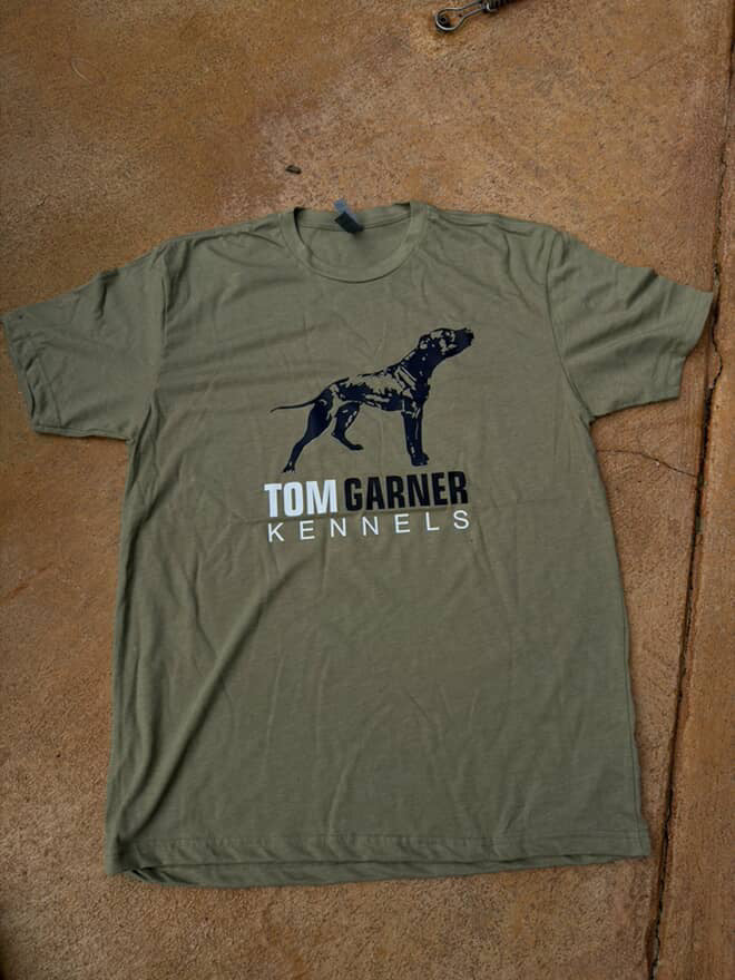 You are purchasing the 1st edition of the Tom Garner Kennels T- Shirt line. Quantities are limited.